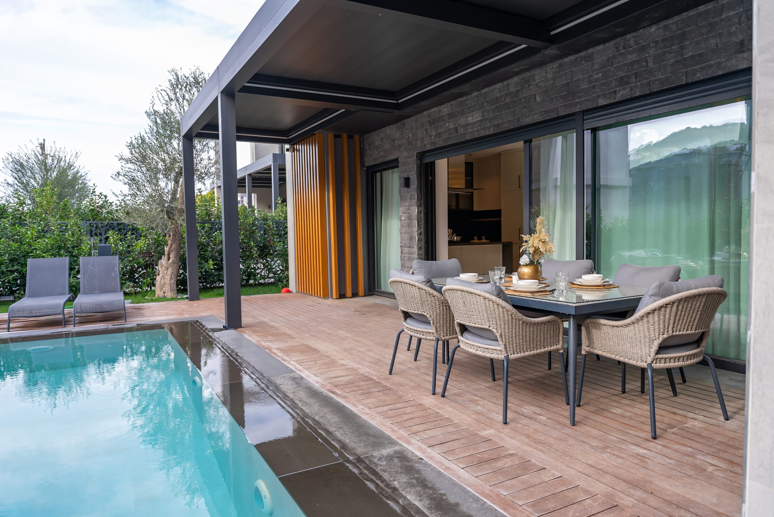 Villanın geniş yaşam alanları, konforlu mobilyalar ve doğal ışık alan ferah odaları, tatilinizi daha da özel kılacak. Özel yüzme havuzunun tadını çıkarabilir, yemyeşil bahçesinde sevdiklerinizle vakit geçirebilirsiniz. Ayrıca, villa denize sadece birkaç dakika yürüme mesafesinde olup, berrak suların ve altın kumların keyfini çıkarmanız için ideal bir konumdadır.